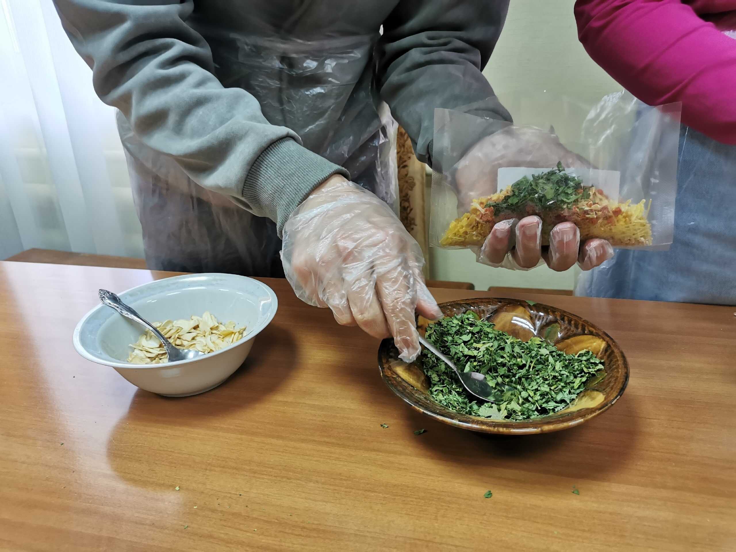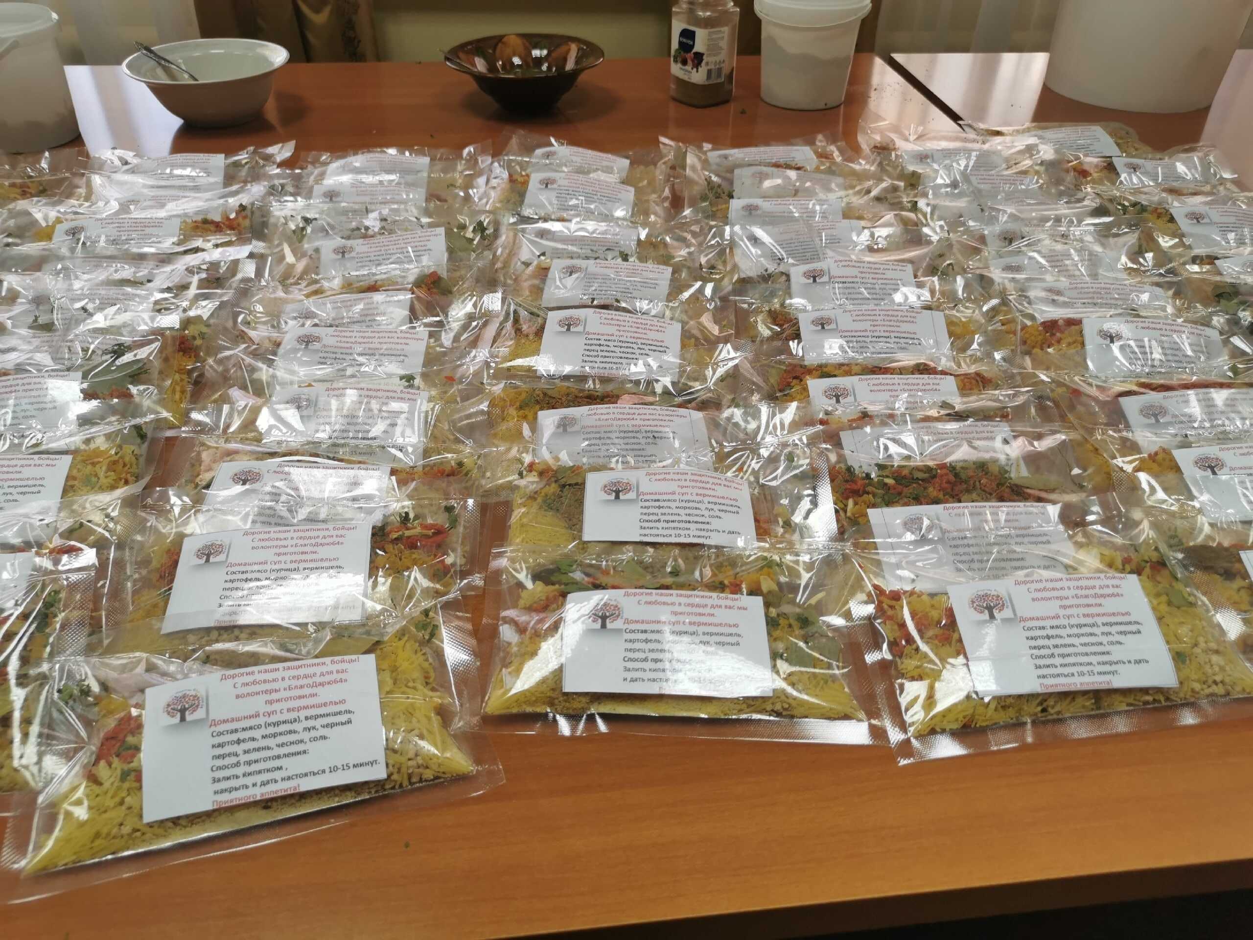 Мастер-класс провели сотрудники от Волонтерского общества при Храме Рождества Христова «БлагоДарю 64» . Волонтеры изготовили сухие супы для участников Специальной Военной Операции.